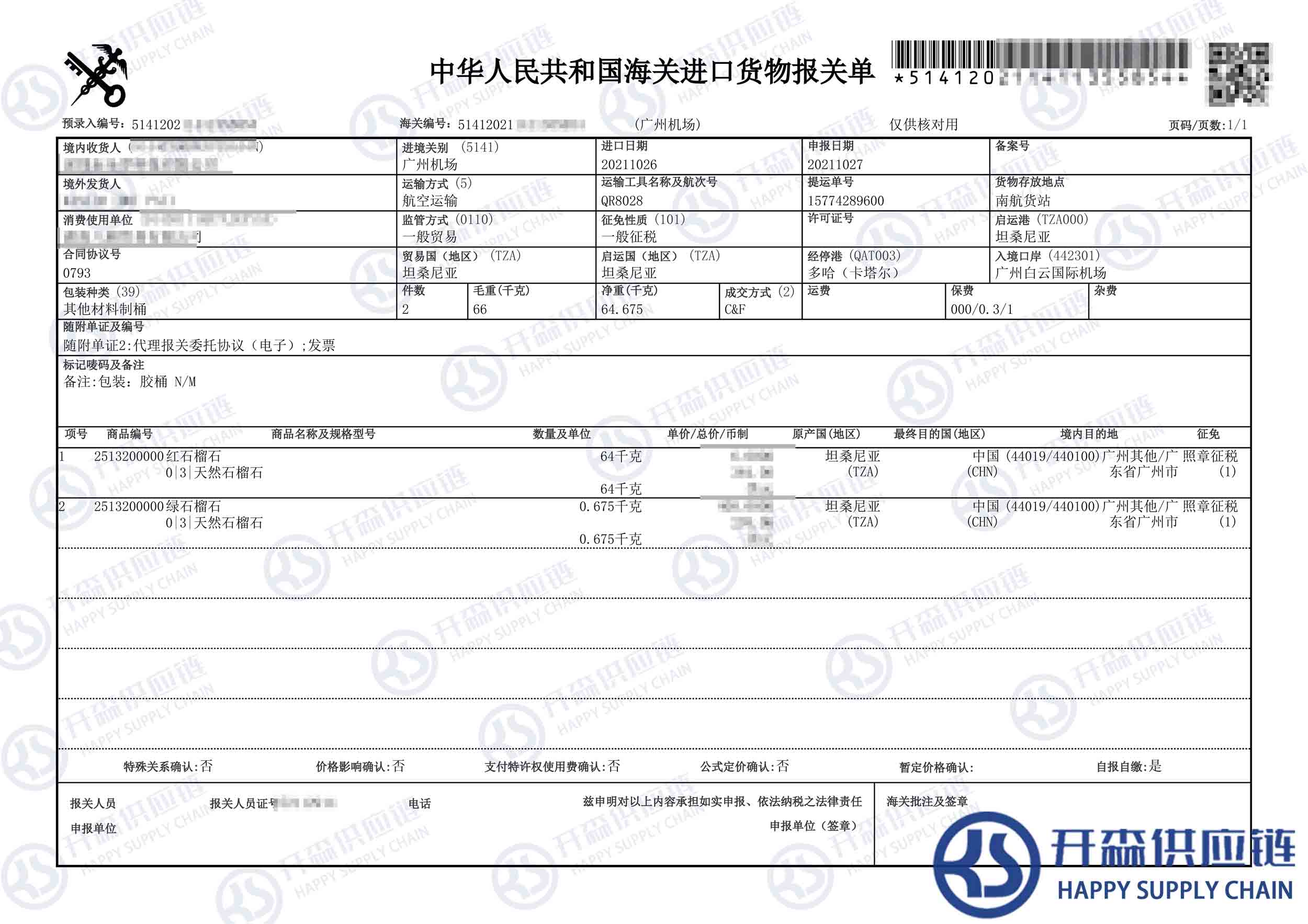 一、坦桑尼亞石榴石進口報關(guān)代理案例詳情
