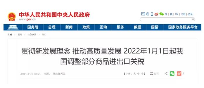 經(jīng)國務(wù)院批準(zhǔn),國務(wù)院關(guān)稅稅則委員會(huì)印發(fā)通知,2022年將調(diào)整部分商品的進(jìn)出口關(guān)稅。為完整、準(zhǔn)確、全面貫徹新發(fā)展理念,支持構(gòu)建新發(fā)展格局,繼續(xù)推動(dòng)高質(zhì)量發(fā)展,經(jīng)國務(wù)院批準(zhǔn),國務(wù)院關(guān)稅稅則委員會(huì)印發(fā)通知,2022年將調(diào)整部分商品的進(jìn)出口關(guān)稅。