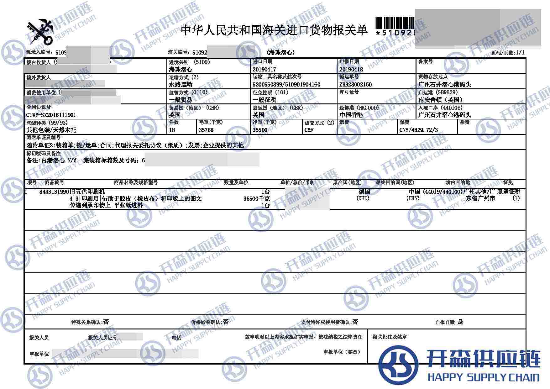 原文標題:廣州港舊五色印刷機進口報關清關代理【進口案例】