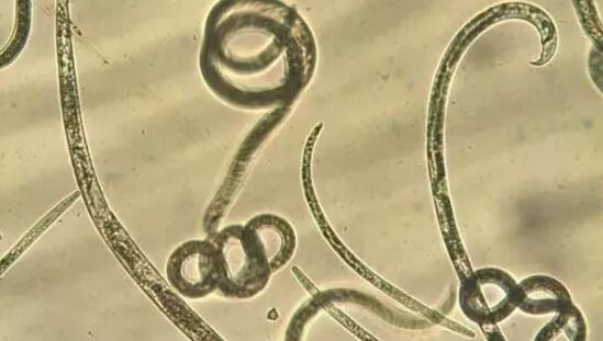 ★病原物形態:線蟲體纖細,表面光滑,有環紋。雌蟲卵巢前伸,上陰唇長,形成陰門蓋,尾近圓柱形,尾端鈍圓;雄蟲尾尖,似爪狀,交合刺大,弓形,成對,基部有一大而尖的喙,交合刺末端有一凸出物,尾端有一卵圓形的交合傘。