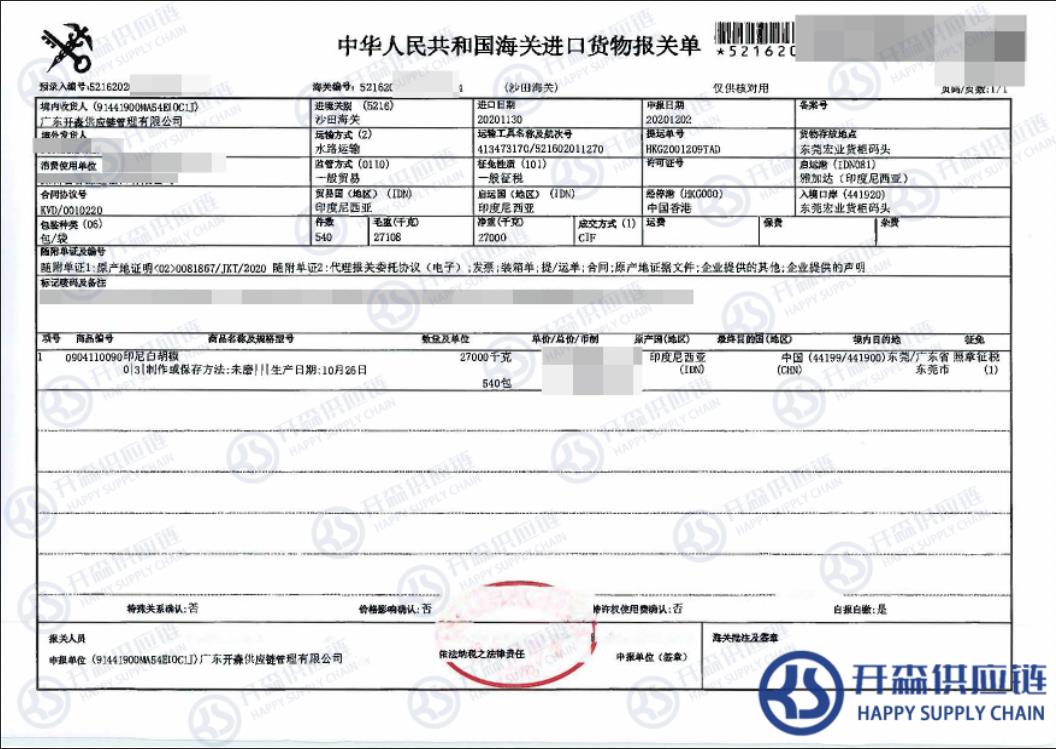 一、印度尼西亞白胡椒進(jìn)口報關(guān)手續(xù)資料
