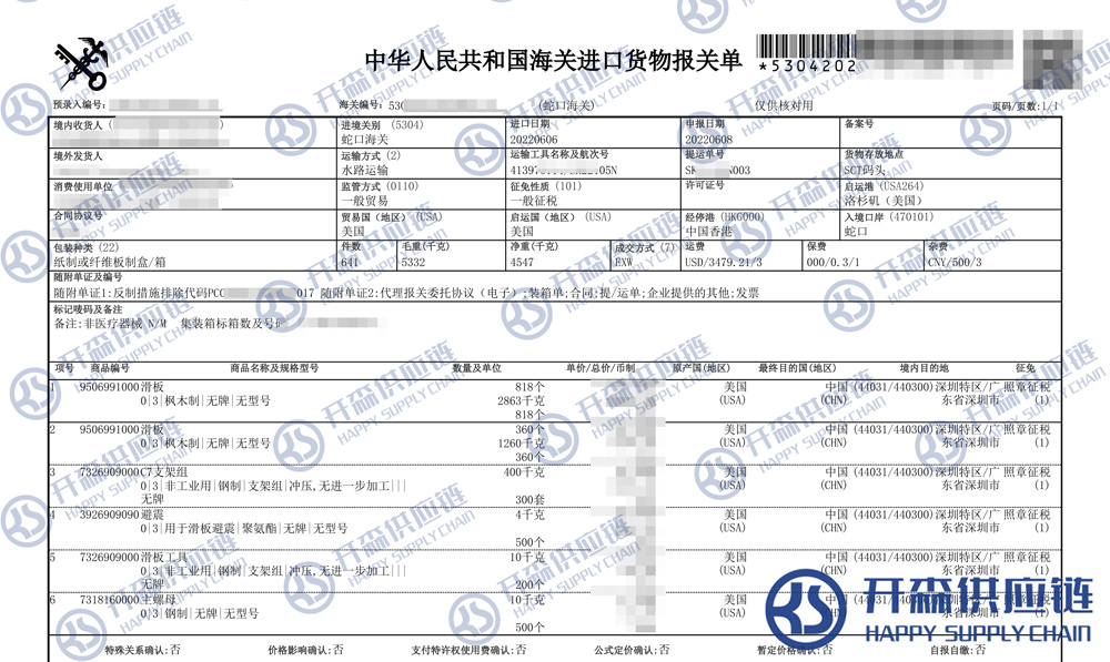 一、美國滑板進(jìn)口報(bào)關(guān)代理案例詳情