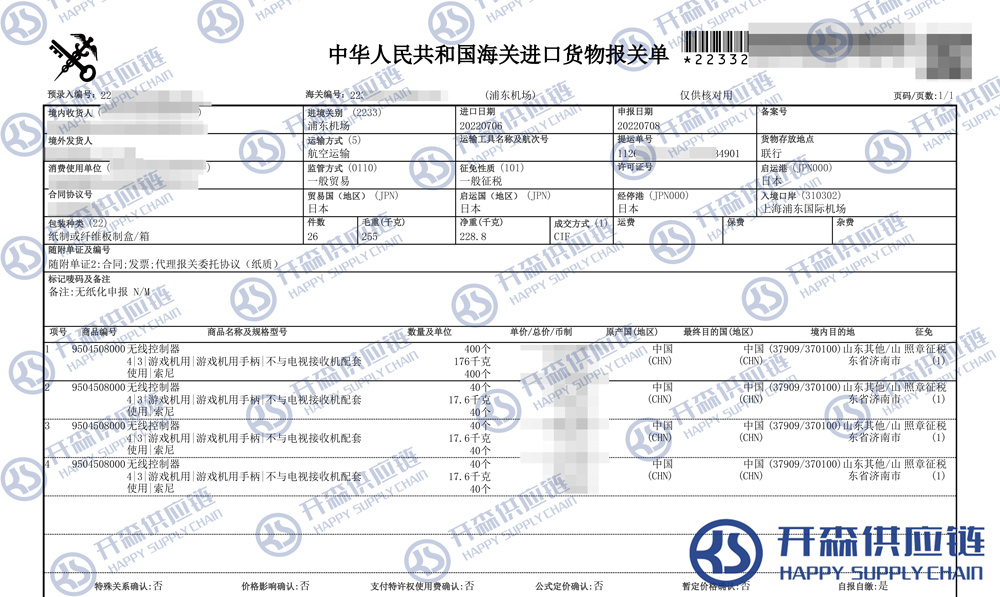 開森進(jìn)口供應(yīng)鏈擁有豐富的游戲手柄進(jìn)口報關(guān)操作經(jīng)驗及案例,十余年操作經(jīng)驗及案例可供參考,可按需定制游戲手柄進(jìn)口方案,幫助客戶解決進(jìn)口難題,快速進(jìn)口清關(guān)到港到貨。