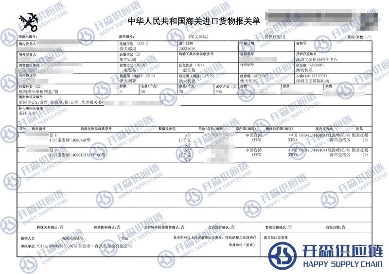 一、澳大利亞高端顯卡進口報關(guān)代理案例詳情