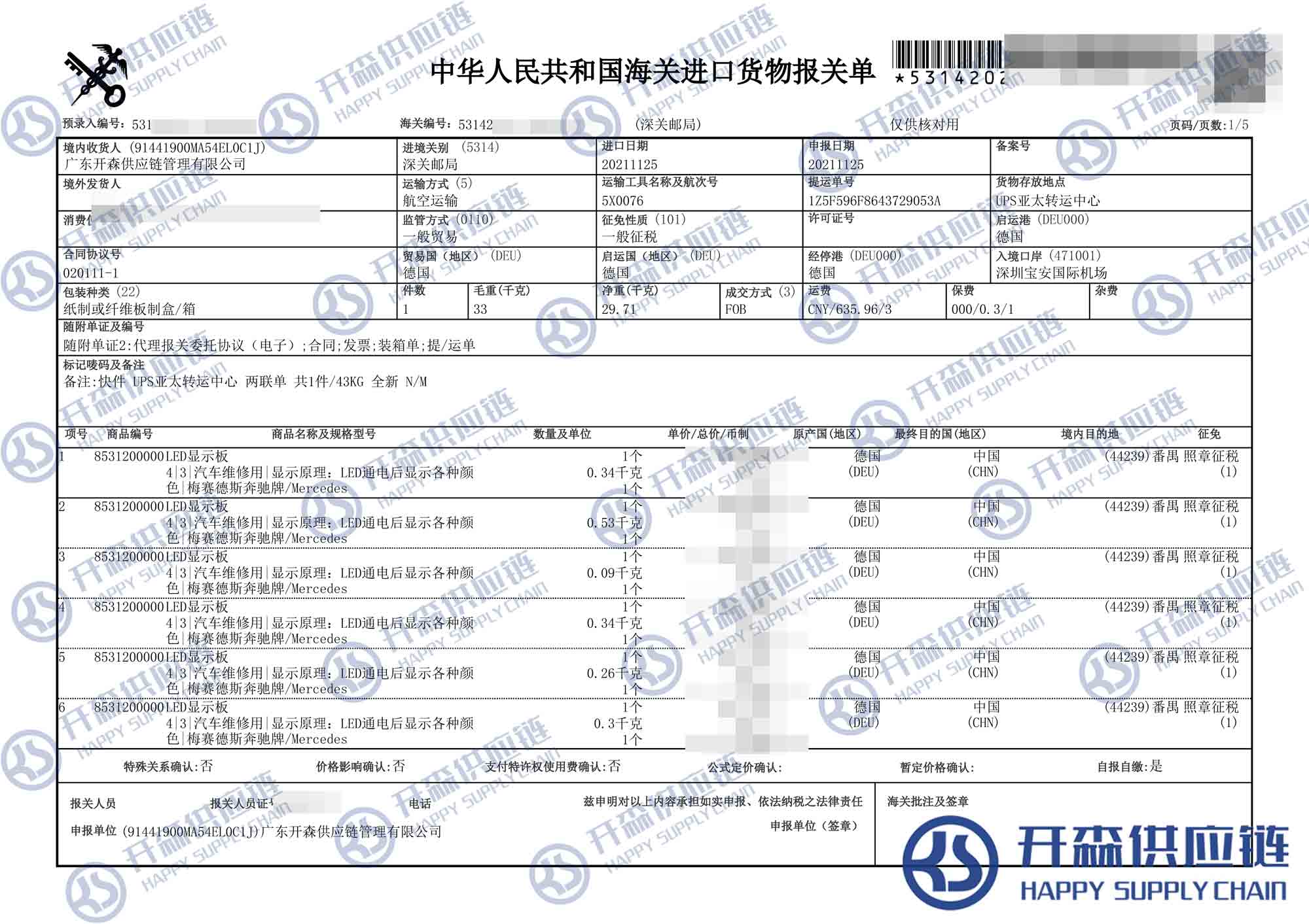 原文標題:德國奔馳顯示板汽車配件進口報關代理【進口案例】
